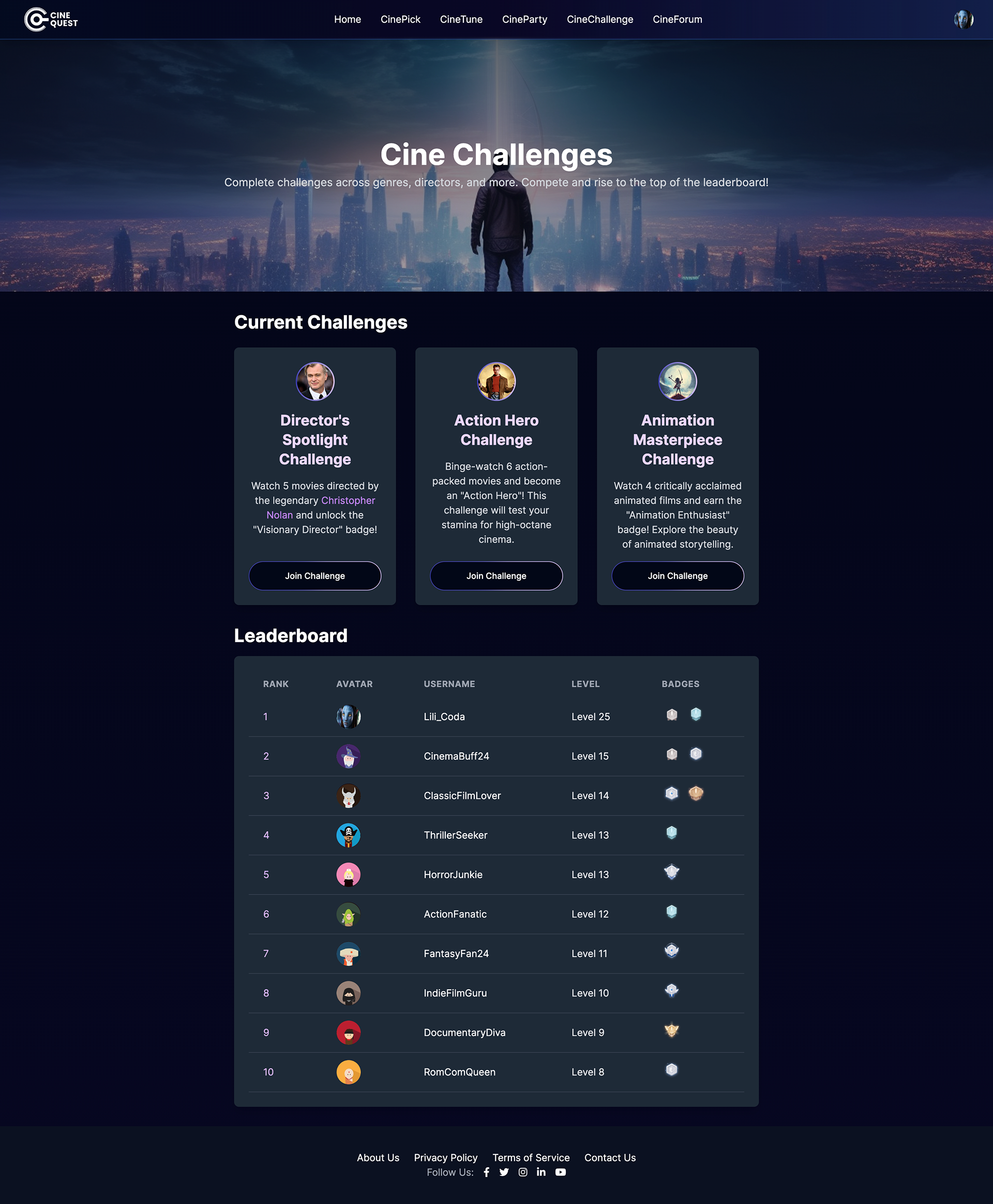 CineChallenges – badges & leaderboards